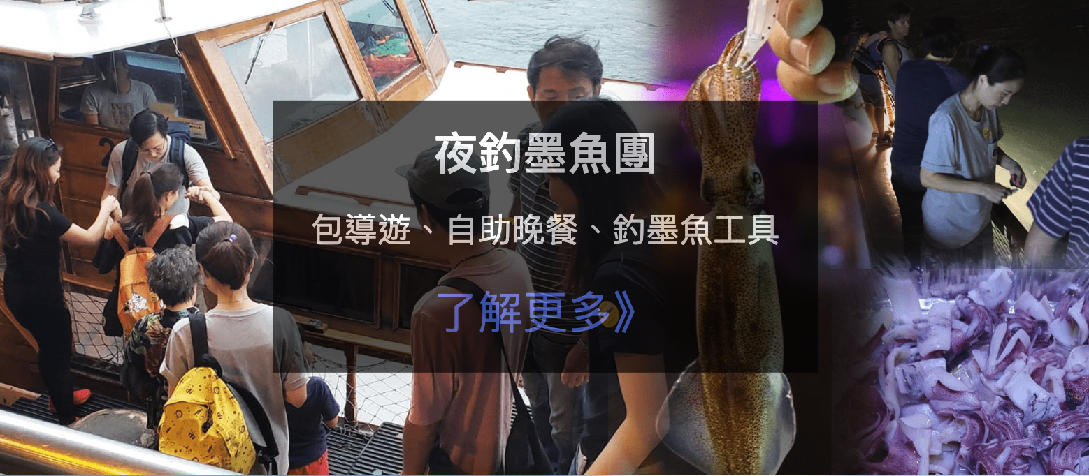 包導遊、自助晚餐、釣墨魚工具